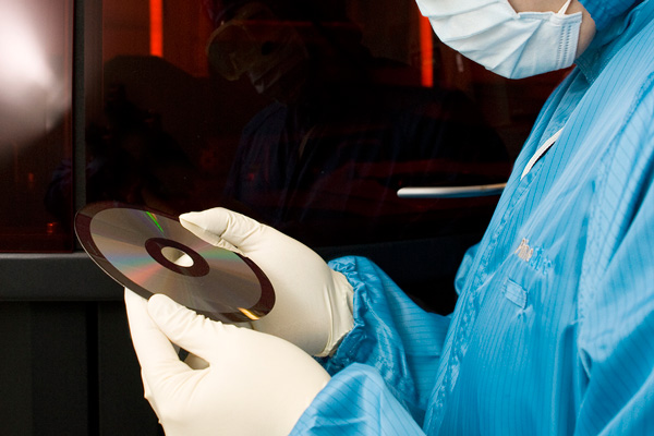 利用光盤注塑機把聚碳酸酯樹脂加熱,溶壓在母盤上作光盤複製生產。
